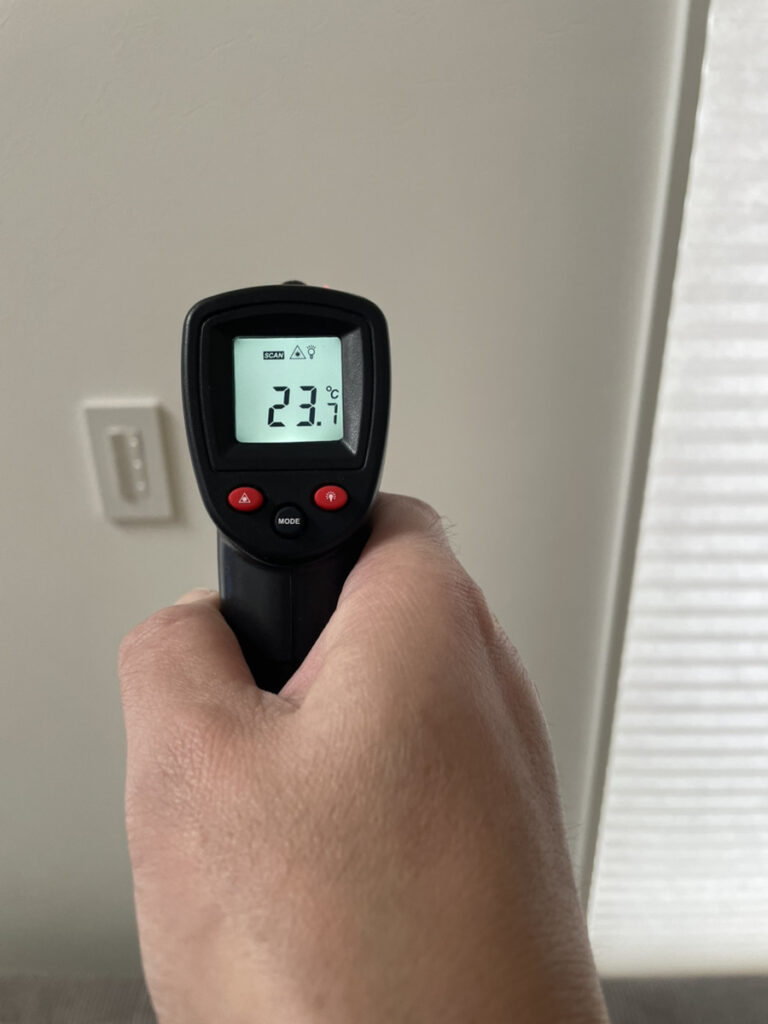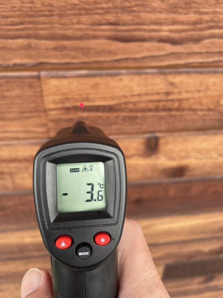 そんな中、前回のモデルハウス室温検証動画を思いだして、今日の方が検証日和ではないか!!と思い測ってみることにしました。